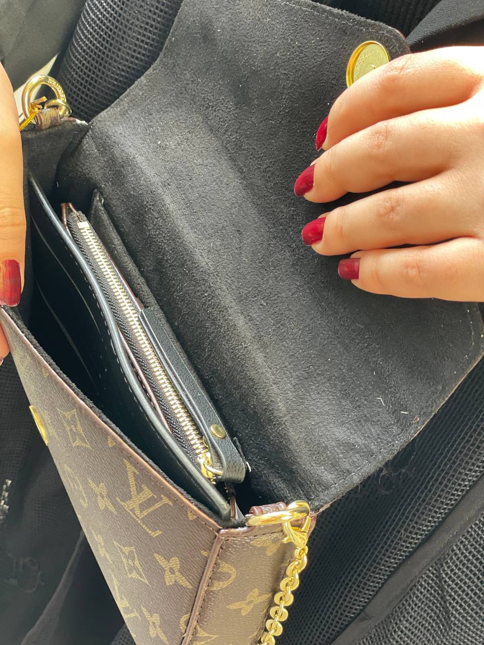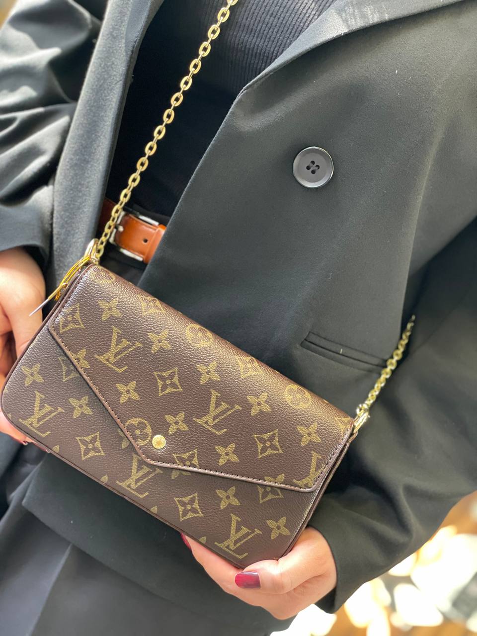 طراحی شیک و مدرن: ترکیب رنگ قهوهای با لوگوی معروف لویی ویتون مناسب استایل رسمی و کژوال.